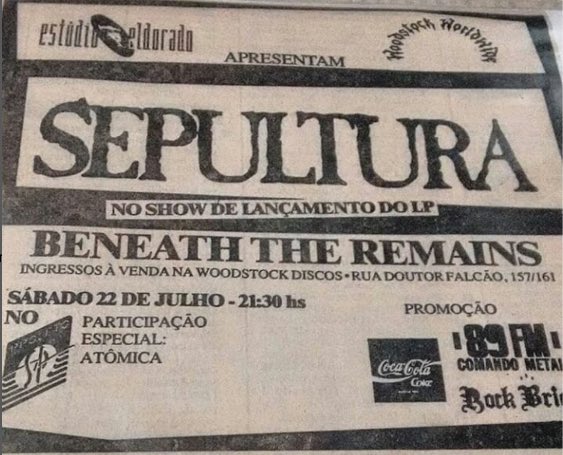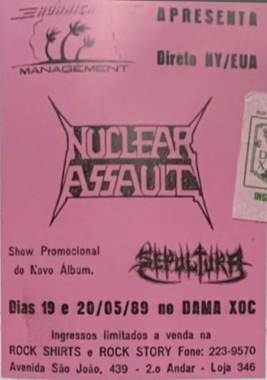 - 20/05/1989; Concert at Dama Xoc, Sao Paulo, Brazil. opening for Nuclear Assault.