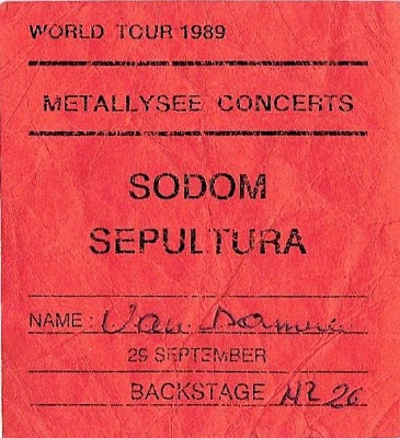 - 25/09/1989; Concert at Hybepark, Osnabruck, Germany. opening for Sodom.