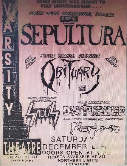 07/11/1989; Concert at Foufounes Electric, Montreal, QC, Canada. with Faith Or Fear. Devastation & Obliveon play. (no Sep or F.O.F., visa problems).