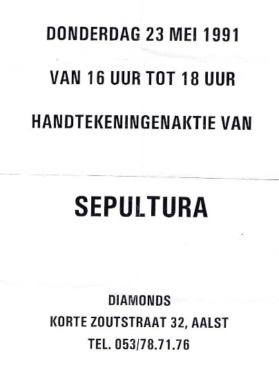 - 20/11/1996; Concert at Brabanthal, Leuven, Belgium. with Strife. (Nov. 20th - Dec. 20th; 'Roots' Europe tour 1996).