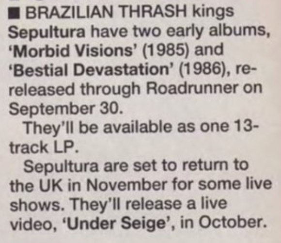 - 01/12/1985; 'Bestial Devastation' split album released. (with 'Overdose').