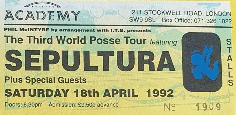 - 16/12/1996; Concert at Brixton Academy, London, England. with Floodgate & Strife. last show with Max. released in 2002 as 'Under A Pale Grey Sky' live album.