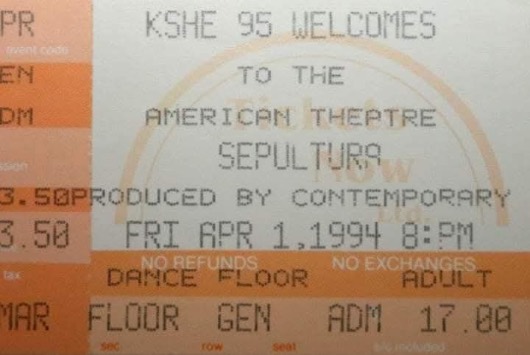 - 04/10/1996; Concert at Riverfront Coliseum, Cincinnati, OH, USA. opening for Ozzy, with Danzig & Prong.