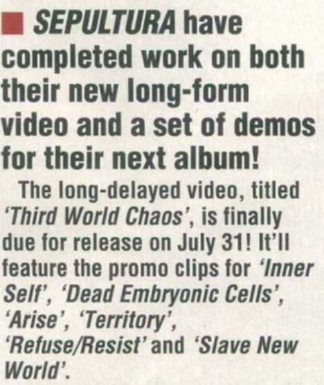 - 21/10/1996; 'Chaos A.D.' re-issued with four bonus tracks.