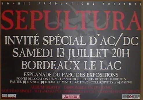 - 13/07/1996; Concert at Parc Des Expositions, Bordeaux, France. opening for AC/DC, with Wildhearts.