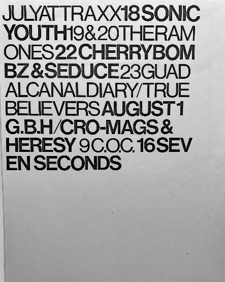 - 30/06/1982; Concert at On Broadway, San Francisco, CA, USA. opening for Minor Threat, with asst.