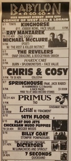 - 23/08/1991; Concert at Babylon A Go Go, Cleveland, OH, USA. with Quicksand.