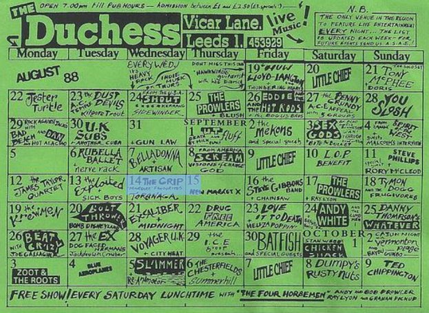 - 05/10/1988; Concert at The Duchess Of York, Leeds, England. with Re-Animator.