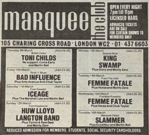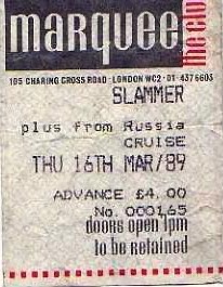 - 16/03/1989; Concert at The Marquee, London, England. with Cruise.