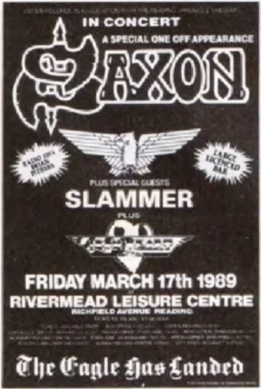 - 17/03/1989; Concert at The Rivermead, Reading, England. opening for Saxon, with Iron Heart.