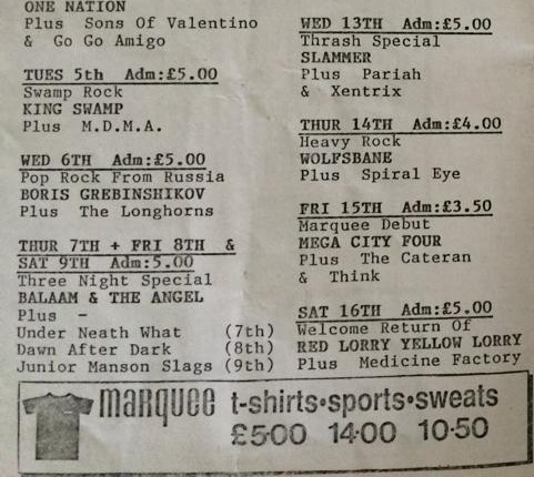- 03/04/1990; Concert at The Marquee, London, England.