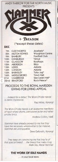 15/12/1988; Concert at The Venue, Cardiff, Wales. opening for Onslaught & The Crumbsuckers. (cancelled). (Dec. 15th - 28th 'British & European' tour).