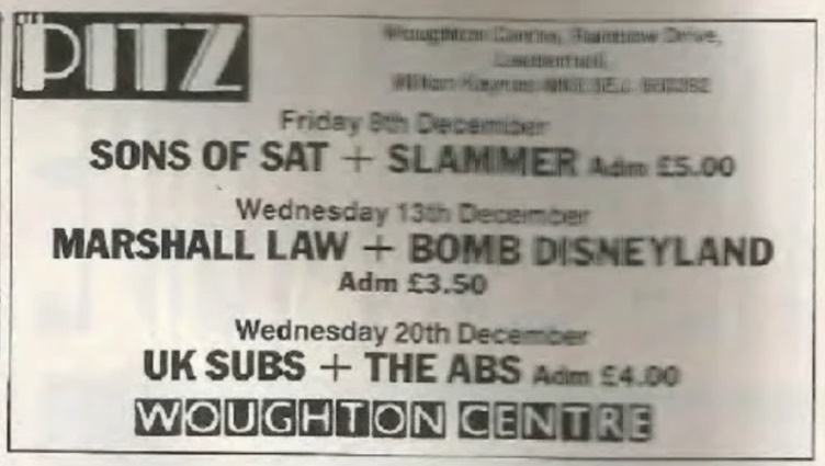 - 08/12/1989; Concert at The Woughton Center, Milton Keynes, England. opening for Venom ('Sons Of Satan'), with Treason.