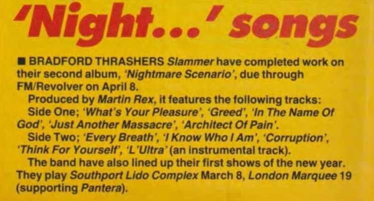 - 08/04/1991; 'Nightmare Scenario' album released.