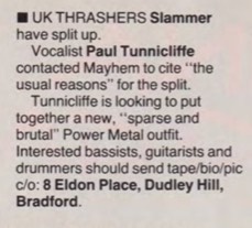 - ??/??/1987; at some point mid '87 Slammer form in Bradford; Paul (v), Enzo (g), Milo (g, b) & Andy (d).