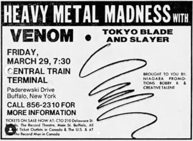 - 27/10/1984; Concert at Larry's Hideaway, Toronto, ON, Canada. with Razor.