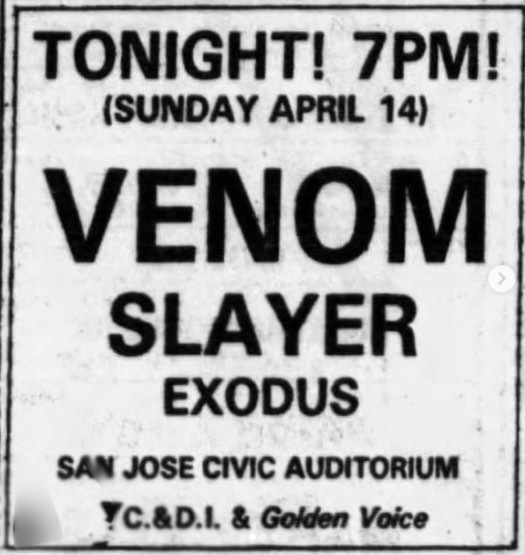 - 16/07/1984; Concert at Old Monterey Music Hall, Monterey, CA, USA. with Hirax & Death Angel.