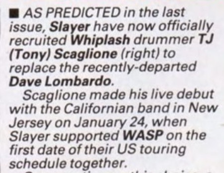 - ??/??/1981; Slayer form in Huntington Park, CA late '81; Tom (v, b), Kerry (g), Jeff (g) and Dave (d).