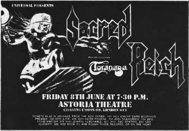 08/06/1990; Concert at The Astoria, London, England. opening for Sacred Reich. (dropped from bill).