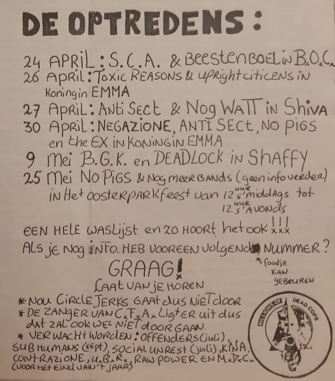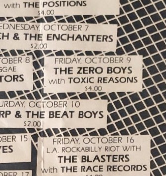 - 29/11/1981; Concert at Sounds Of Music, San Francisco, CA, USA. opening for Social Distortion, with 7 Seconds.