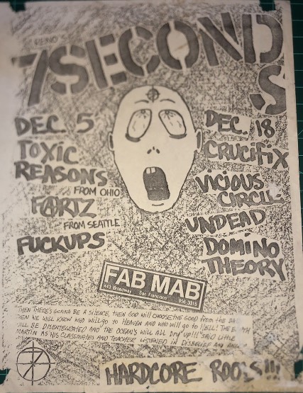 - 05/12/1981; Concert at Mabuhay Gardens, San Francisco, CA, USA. opening for 7 Seconds, with The Fartz.