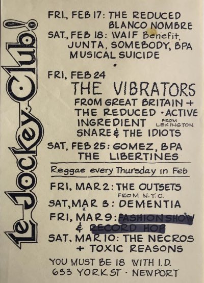 - 08/10/1982; Concert at The Jockey Club, Newport, KY, USA. with Delinquents.