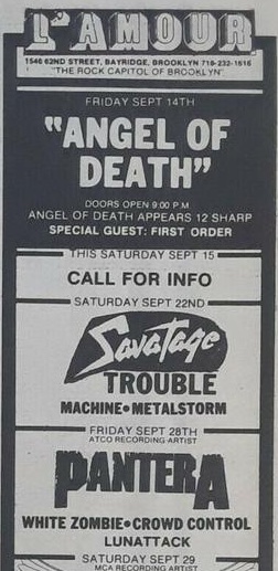 - 12/08/1989; Concert at The Ritz, New York, NY, USA. opening for Danzig, with Cycle Sluts From Hell & Nevermore.