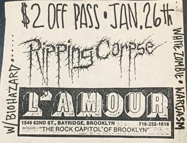 - 02/11/1986; Concert at CBGB'S, Manhattan, NY, USA. with Prong, Damage, The Bags, Dirge & asst.