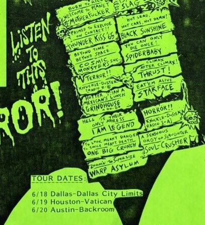 - 03/03/1989; Concert at CBGB'S, Manhattan, NY, USA. with Ed Gein's Car, Random Facts & Texas Instruments. 'Make Them Die Slowly' album release.
