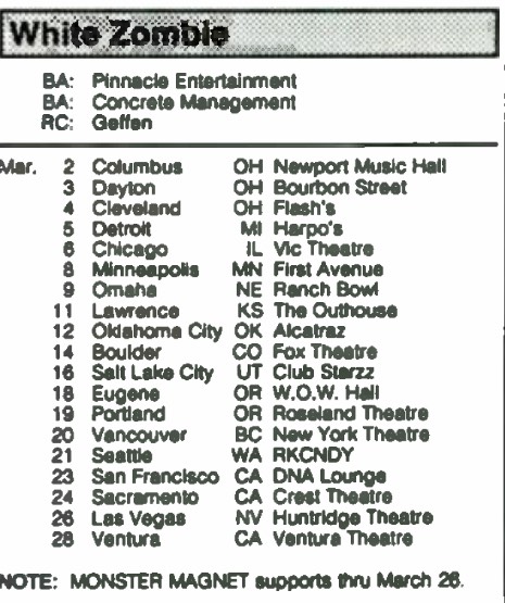 - 28/08/1996; Concert at Knickerbocker Arena, Albany, NY, USA. with Pantera & The Deftones. (White Zombie's last show).