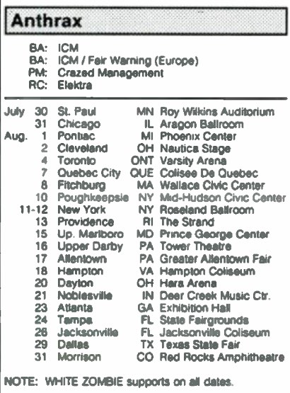- 19/08/1996; Concert at Blockbuster Ent. Centre, Camden, NJ, USA. with Pantera & The Deftones.