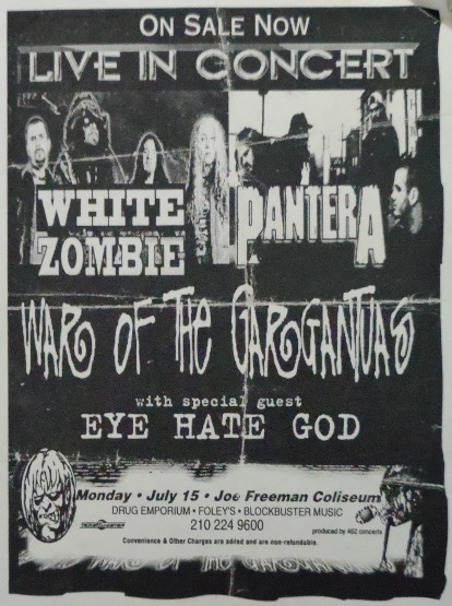 - 15/07/1996; Concert at Freeman Coliseum, San Antonio, TX, USA. with Pantera & Eyehategod.