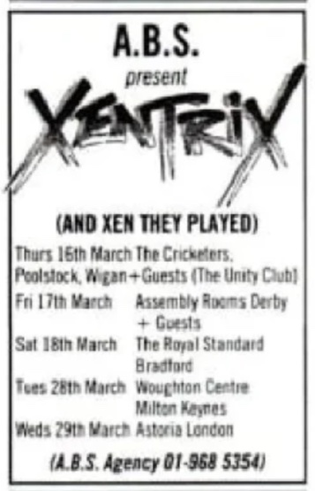 - 16/03/1989; Concert at Wigan Unity Club, Wigan, England. with The Unity Church.