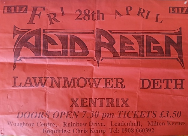 - 28/04/1989; Concert at The Woughton Centre, Milton Keynes, England. opening for Acid Reign & Lawnmower Deth.