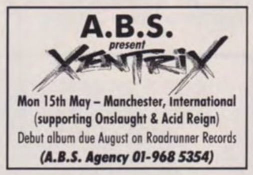 - 15/05/1989; Concert at Manchester International, Manchester, England. opening for Onslaught & Acid Reign.