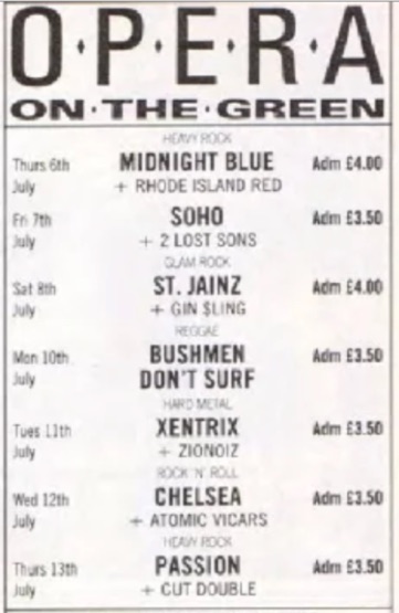 - 11/07/1989; Concert at The Opera On The Green, London, England. with Zionoiz.