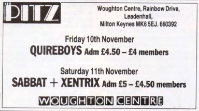 - 05/09/1990; Concert at The Woughton Centre, Milton Keynes, England. opening for Annihilator.