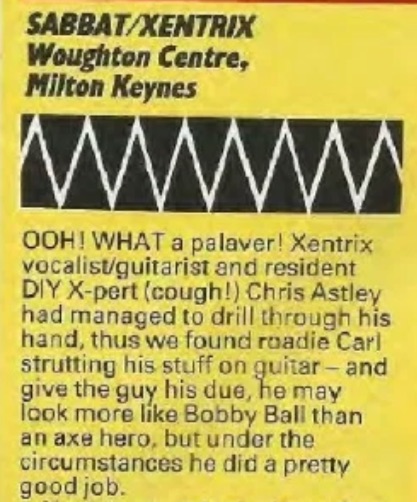 - 24/11/1989; Concert at Banbury Football Club, Banbury, England. opening for Sabbat.