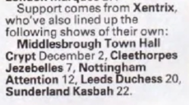- 08/11/1989; Concert at The Attention Club, Nottingham, England.