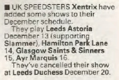 - 13/12/1989; Concert at The Astoria, Leeds, England. opening for Slammer.