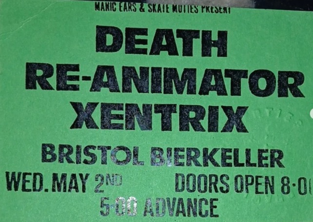 - 02/05/1990; Concert at The Bierkeller, Bristol, England. with Re-Animator. (Death cancelled). (May 2nd - 28th; 'Ghostbustin' The U.K.' Tour).