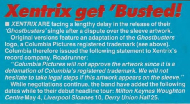 - 19/01/1990; 'Ghost Busters' single originally scheduled to be released, artwork had to be changed.