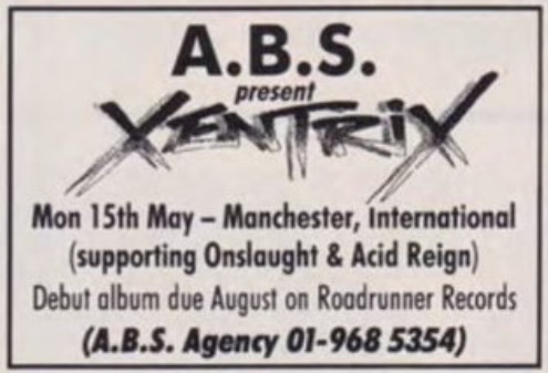 - 15/05/1989; Concert at Manchester International, Manchester, England. opening for Onslaught with Xentrix.
