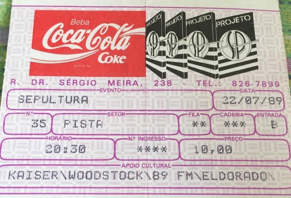 - 19/08/1989; Concert at Ginastico, Bela Horizonte, Brazil. with Overdose.