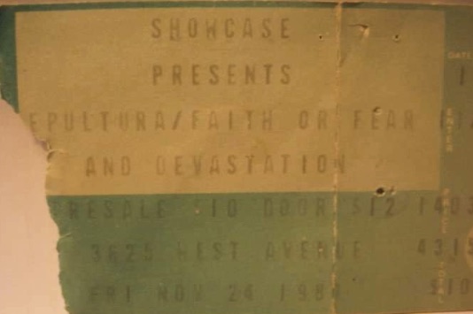 07/11/1989; Concert at Foufounes Electric, Montreal, QC, Canada. with Faith Or Fear. Devastation & Obliveon play. (no Sep or F.O.F., visa problems).