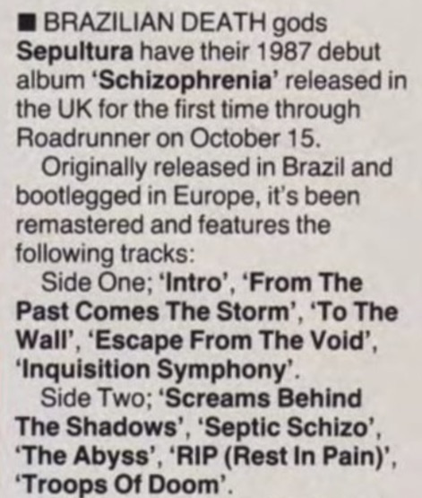 - 10/04/1989; 'Beneath The Remains' album released (Europe).