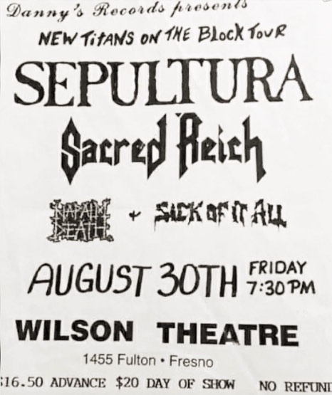 - 15/09/1989; Concert at Fritz, Vienna, Austria. opening for Sodom. (Sept. 15th - Oct. 12th; 'Beneath The Remains' European tour).