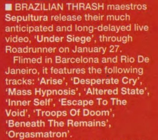 - 21/10/1996; 'Chaos A.D.' re-issued with four bonus tracks.