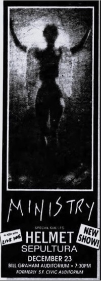 - 31/10/1989; Concert at The Ritz, New York, NY, USA. opening for King Diamond & Sacred Reich, with Toxic. (Oct. 31st - Dec. 12th; 'U.S. Tour' 1989).