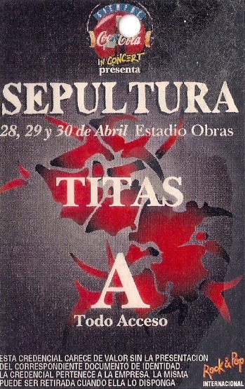 - 15/11/1996; Concert at Estadio Obras Sanitaria, Buenos, Aires.